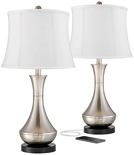 Discussing the design details, we have to mention the modern gourd-shaped base that supports the sturdiness and sophisticated interface of this USB bedside table lamp. Coming with a contoured body it is considered to be one of the most innovative USB table lamps thanks to the two additional ports that it includes.
